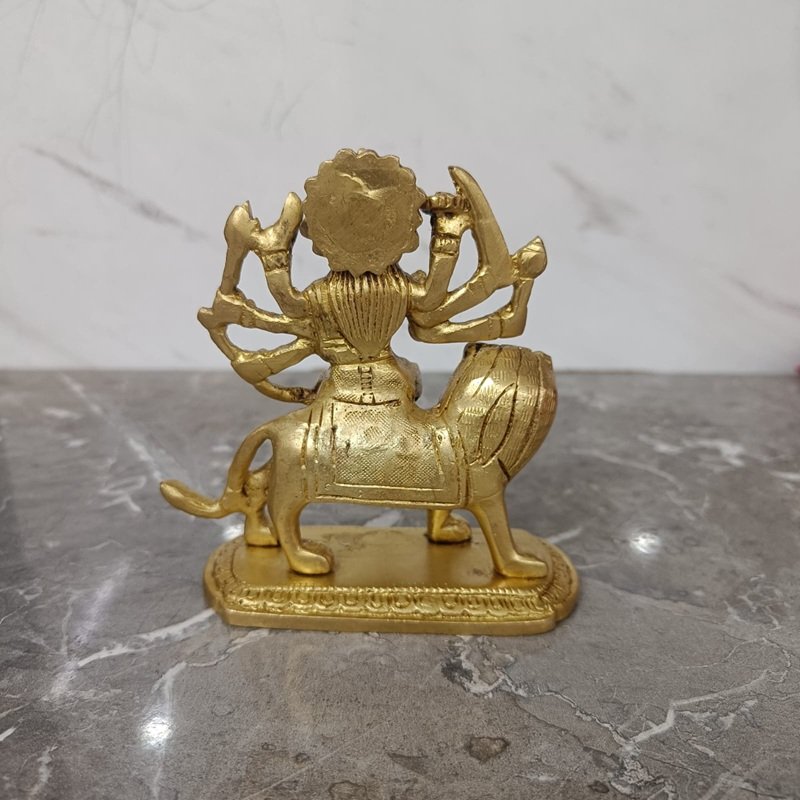 Handcrafted Brass Maa Durga Idol – Divine Goddess Riding Lion – 190 gm
