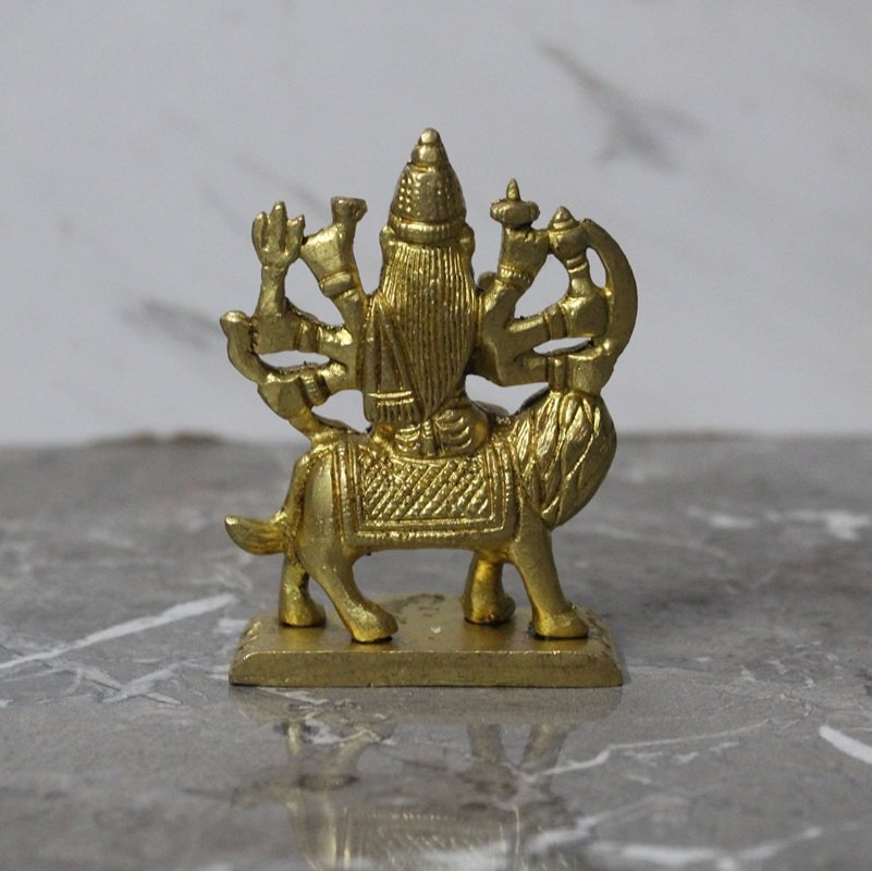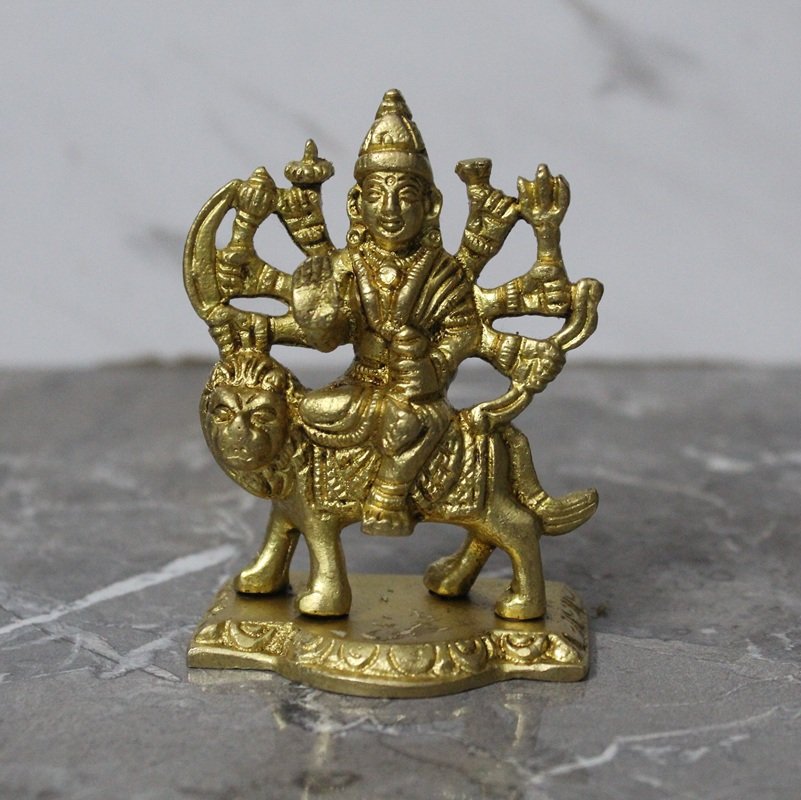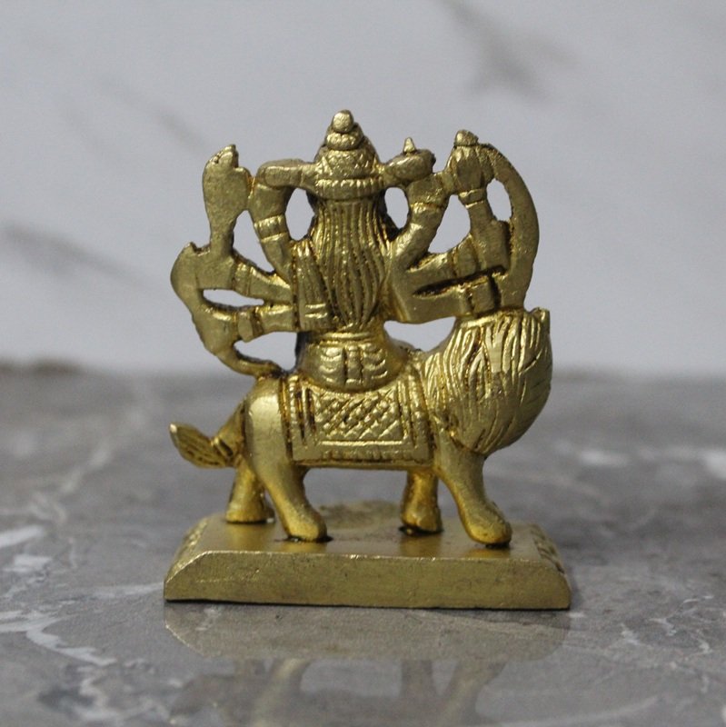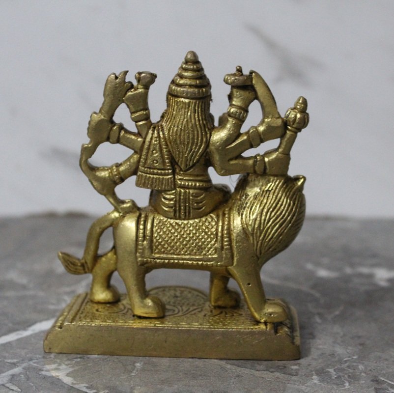 Handcrafted Brass Goddess Durga Idol – Maa Durga Riding Lion Murti with Multiple Arms – 280 gm