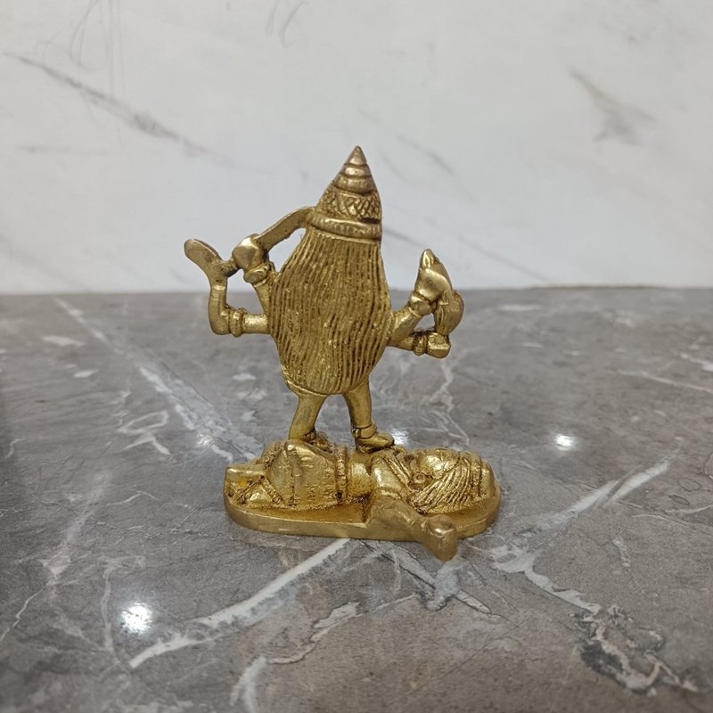 Handcrafted Brass Maa Kali Idol – Fierce Goddess Standing on Shiva – 190 gm